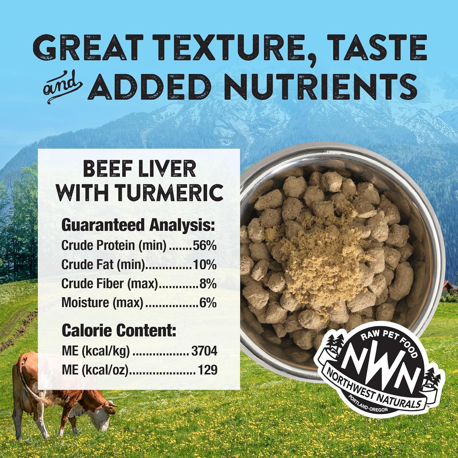Northwest Naturals Freeze-Dried Functional Toppers - Beef Liver with Turmeric (4.5 oz), Salmon/Shiitake/Maitake Mushrooms (3.5 oz) - for Dogs and Cats, Human Grade Ingredients, All Natural