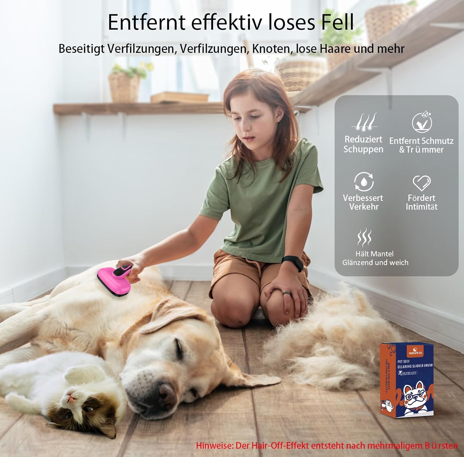 - Easy-to-Use Self-Cleaning Design: Effortlessly remove loose pet hair with the push of a button. Our brush features retractable pins for easy cleaning, ensuring no more loose hair floating around. Great for indoor use.