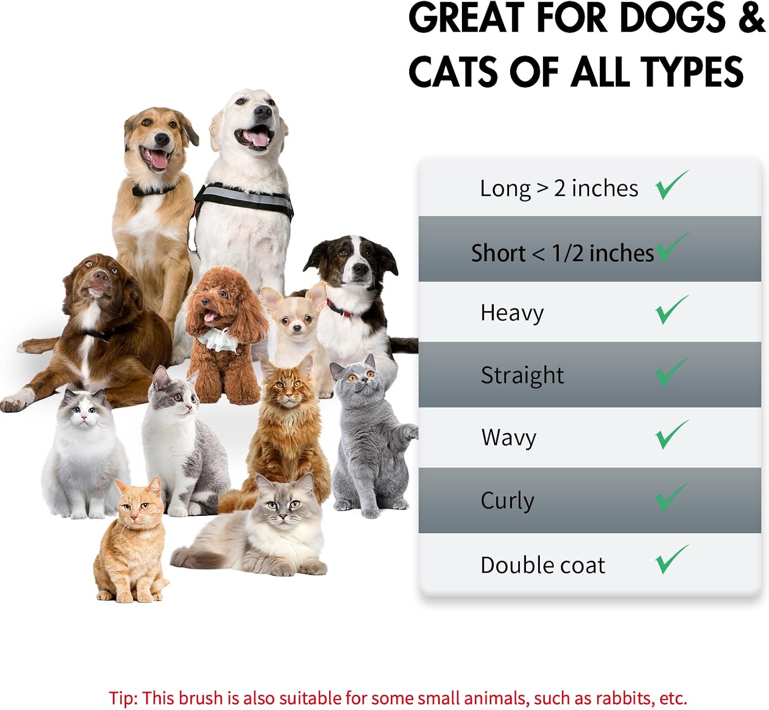 - Easy-to-Use Self-Cleaning Design: Effortlessly remove loose pet hair with the push of a button. Our brush features retractable pins for easy cleaning, ensuring no more loose hair floating around. Great for indoor use.