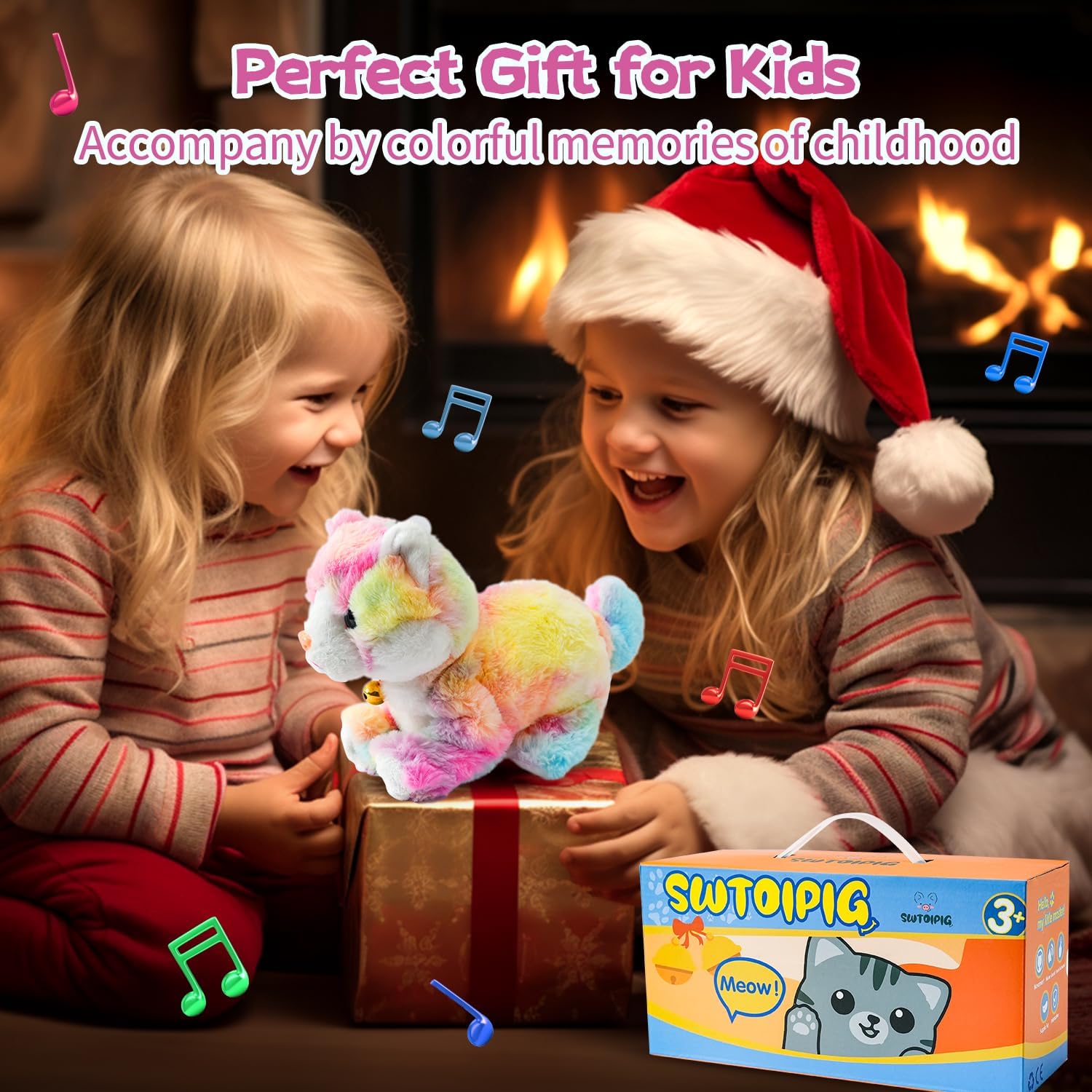 Smalody Interactive Electronic Plush Toy - Animated Sound Control Electronic Pet Robot Cat Kitten Toys Gifts for Boys & Girls Kids Birthday Christmas(LED Eyes) (Colorful)