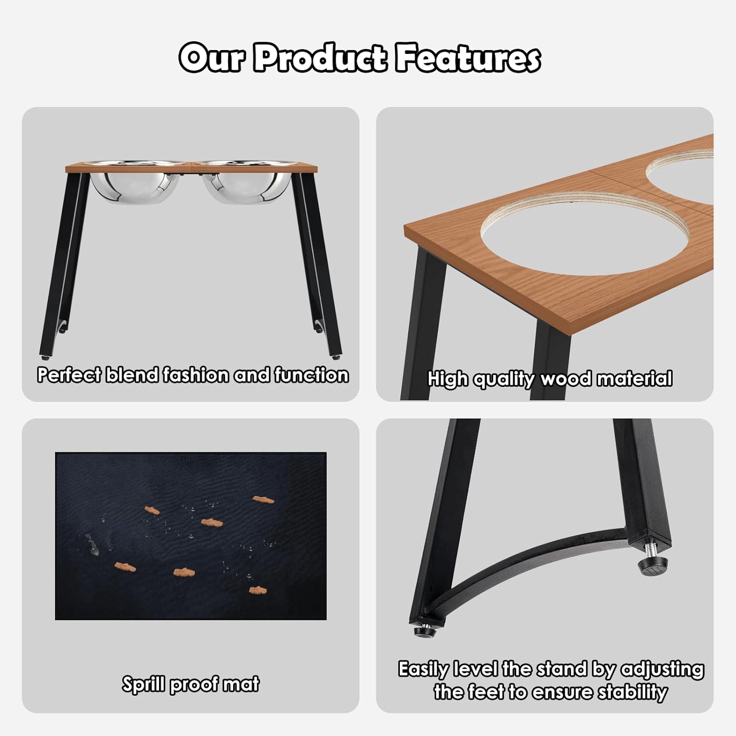 - 【Keep Feeding Area Clean】- The included mat can be placed at the bottom of the dog food stand when feeding, it collects water and food well and prevents them from spilling onto the floor, reducing the hassle of cleaning, perfect for sloppy dogs.