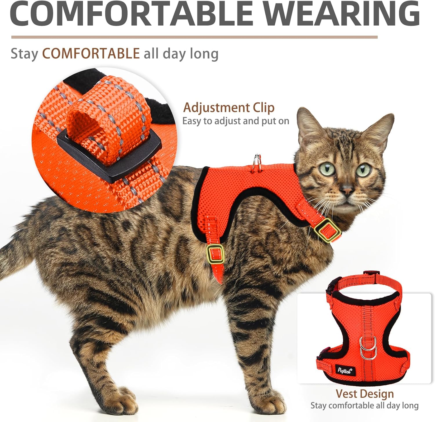 PUPTECK Cat Harness and Leash Set Escape Proof, Reflective Adjustable Soft Mesh Kitten Vest Harness for Walking Travel, Orange, M