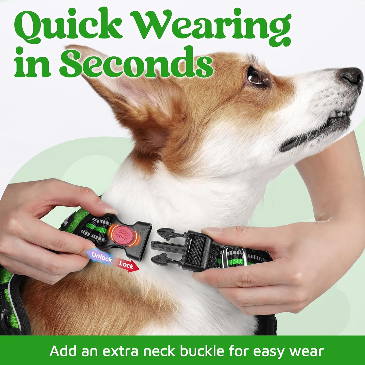 rabbitgoo Dog Harness for Large Dogs, No Pull Pet Vest with 3 Buckles, Adjustable Soft Padded Pet Harness with Easy Control Handle and Reflective Strips, Green, L