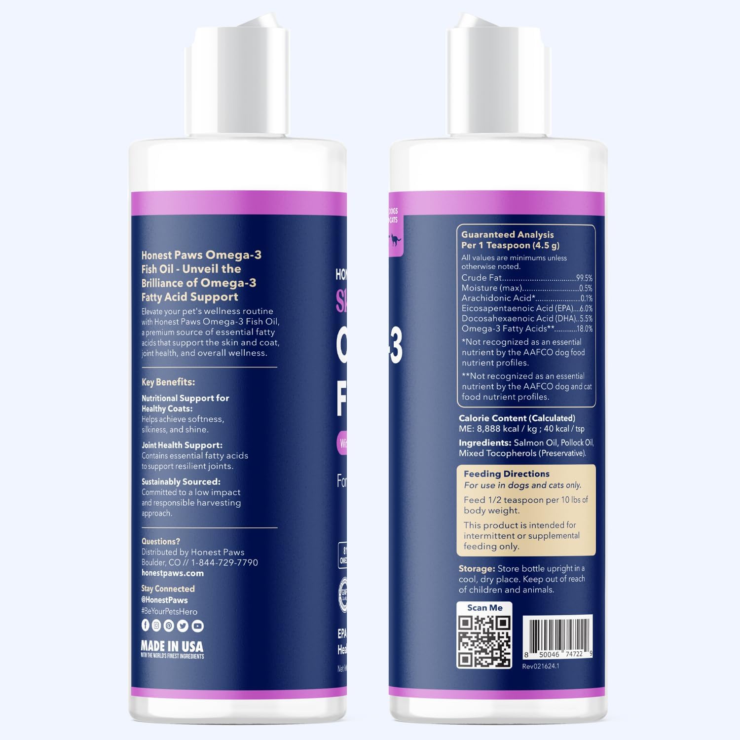 - Elevate Your Pet's Wellness Routine - Honest Paws Omega-3 Fish Oil, a premium source of essential fatty acids that support the skin and coat, joint health, and overall wellness.
