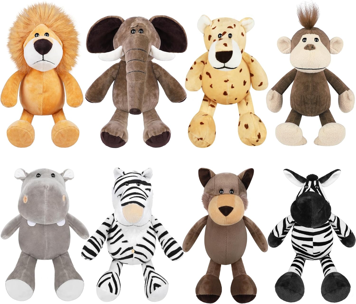 Elcoho 8 Pieces Safari Stuffed Animals Plush Jungle Animal Toys 9.8 Inch Zoo Stuffed Animals Set Cute Plush Toys for Animal Themed Parties Teacher Student Award, 8 Styles