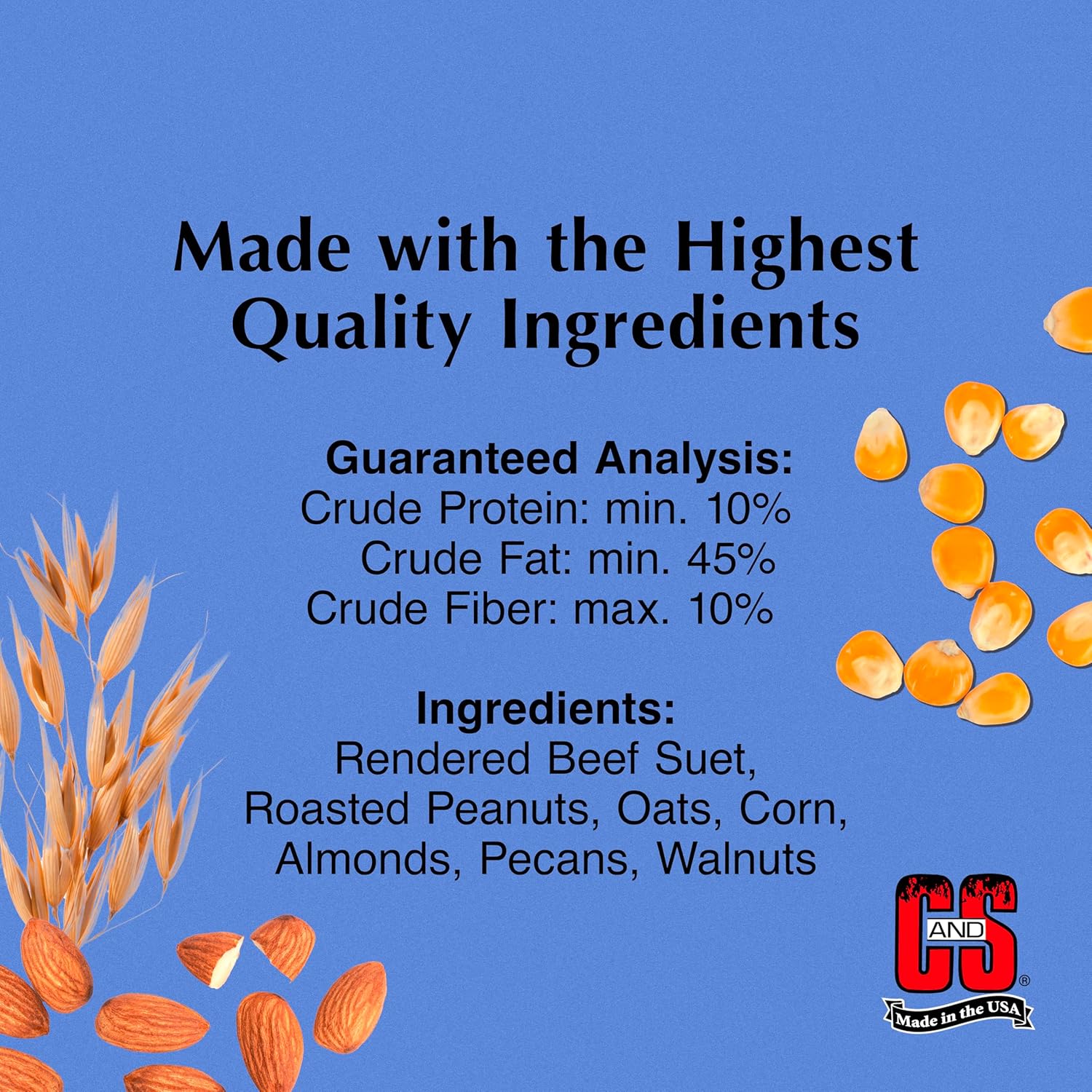 - IDEAL FOR YEAR-ROUND FEEDING, the fat found in nuts provides an additional boost to the fat already in suet, making this one of the highest energy cakes you can offer to wild birds in both hot and cold climates.