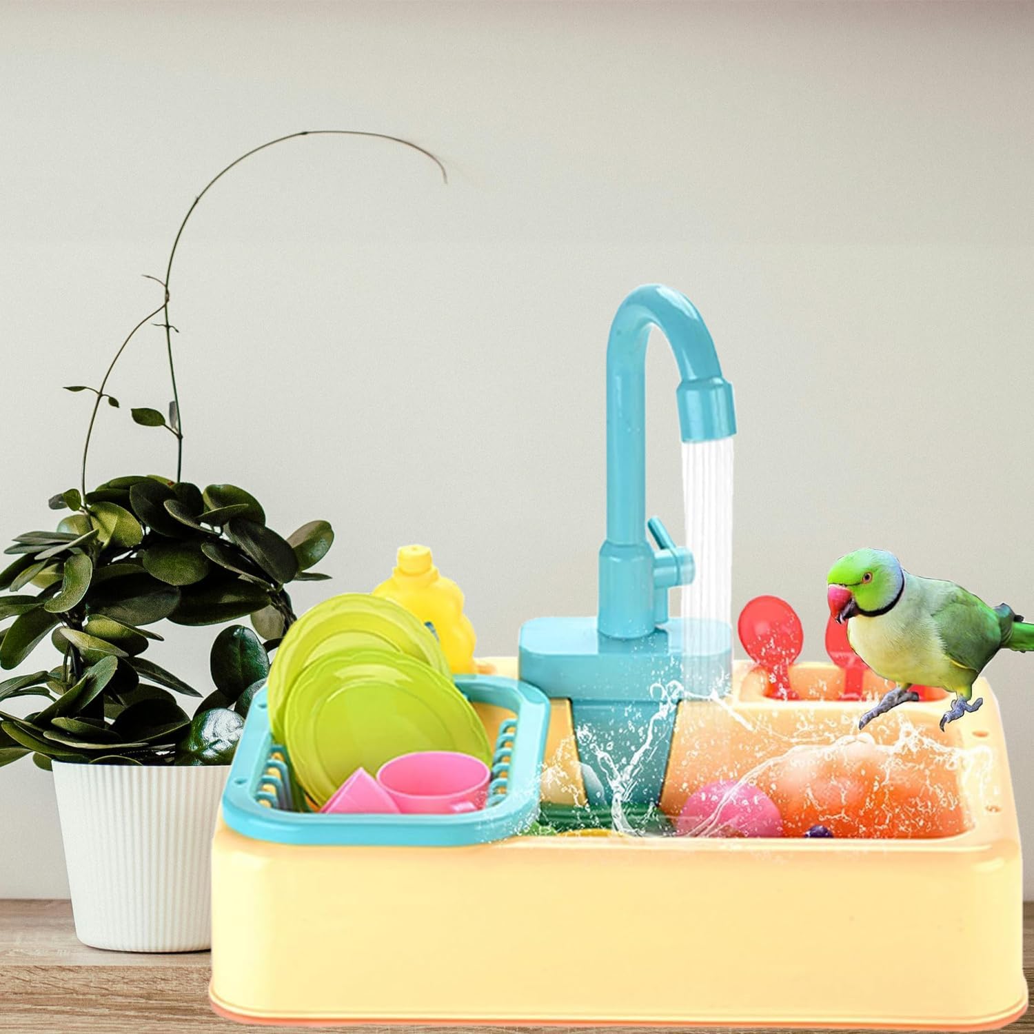 - Multi functional bird bathtub : The parrot bathtub can be your childs simulated dishwasher or your bird parrot bathing tool. It can be used as a childrens toy, and the bird bath tub contains many small toy accessories, which will make birds more interesting when taking a shower. You, your children, and pets will have a wonderful summer.