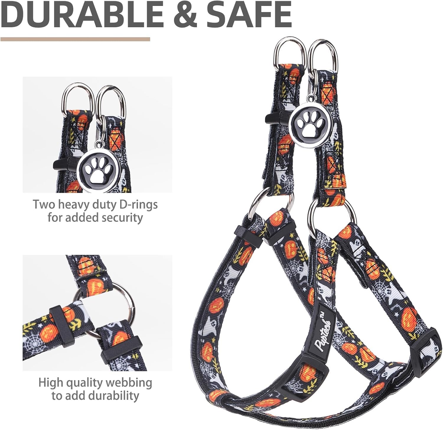 PUPTECK No Pull Dog Harness Soft Adjustable Basic Nylon Step in Puppy Vest Outdoor Walking with ID Tag, Halloween, M