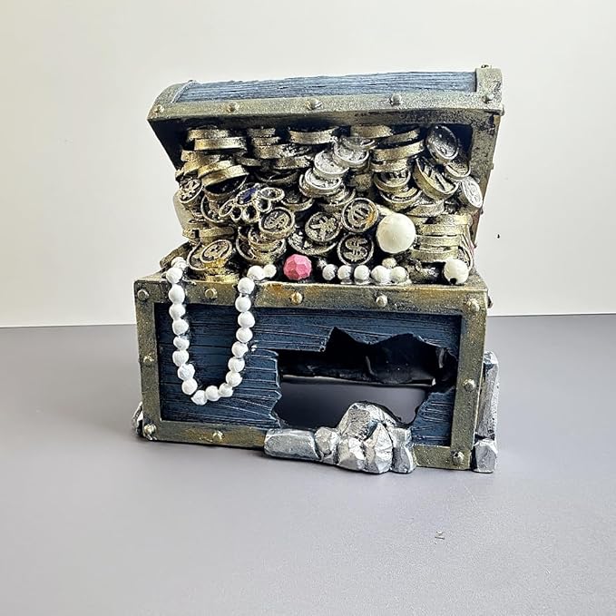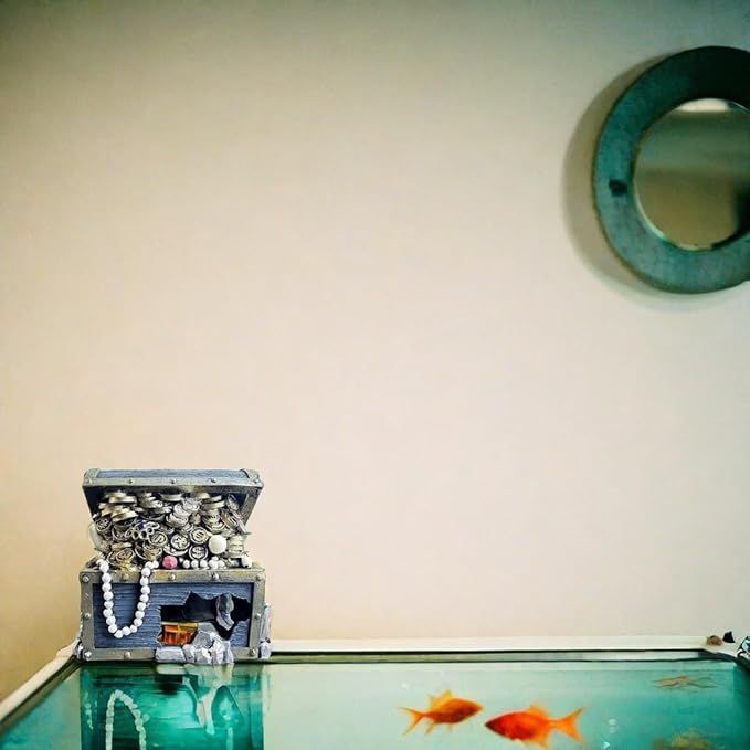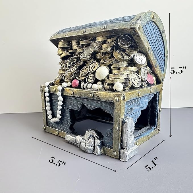 Bearded Dragon Tank Accessories, Fish Tank Decoration, Resin Accessories, for Betta Fish & Shrimp,Improvement Your Fish Tank Overall Aesthetic Dragons Decoration (Treasure Chest)