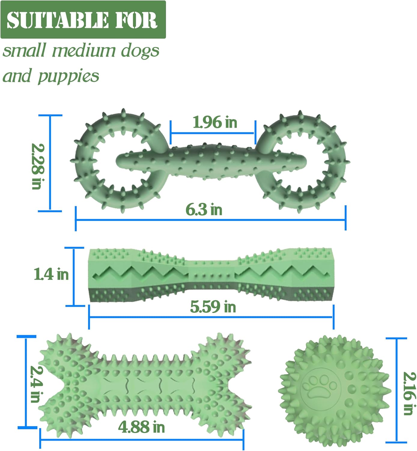 - 4 Different Shapes of Puppy Toys to Keep Them Busy: These puppy toys come in 4 different shapes to keep your furry friend happy and engaged. Pretty, colorful and attractive puppy toys for teething dogs.Their bumpy thorns can clean dog's teeth 360 degrees. bone and ball are dog's favorites, their perfect size fits dog's teeth perfectly.These toys make the perfect birthday or Christmas gifts for pet owners looking to give their furry friend something special.