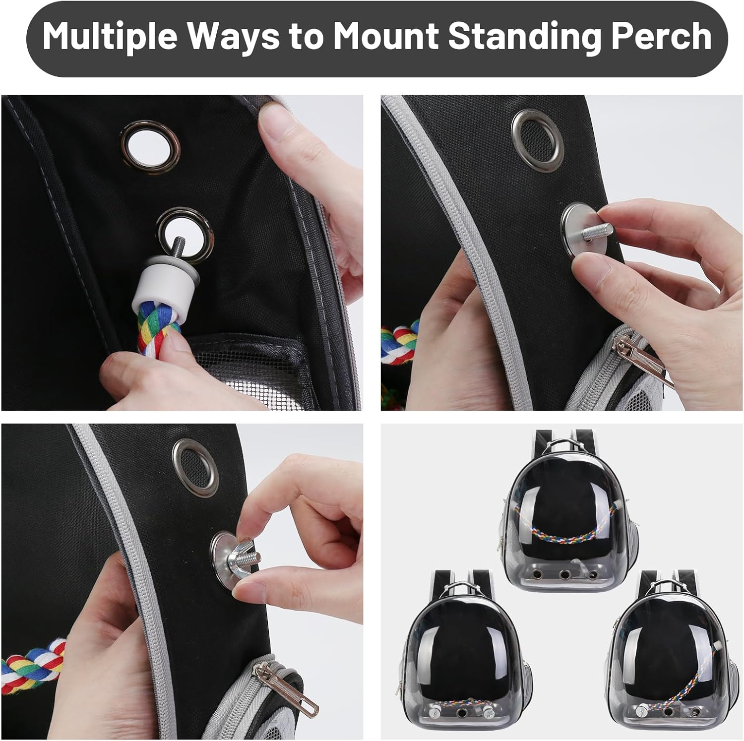- Multi-functional & Fully Equipped: The bird perch can be disassembled and the pet travel backpack also can be used to take cats, dogs, rabbits, mice, lizards, hedgehogs and other small pets. Package includes 1* Bird Backpack; 1 *Soft Mat; 1 *Standing Perch; 1 *Bird Birdseed & Water Cups; 1 *Stainless Steel Tray; 1 *Bird Toy