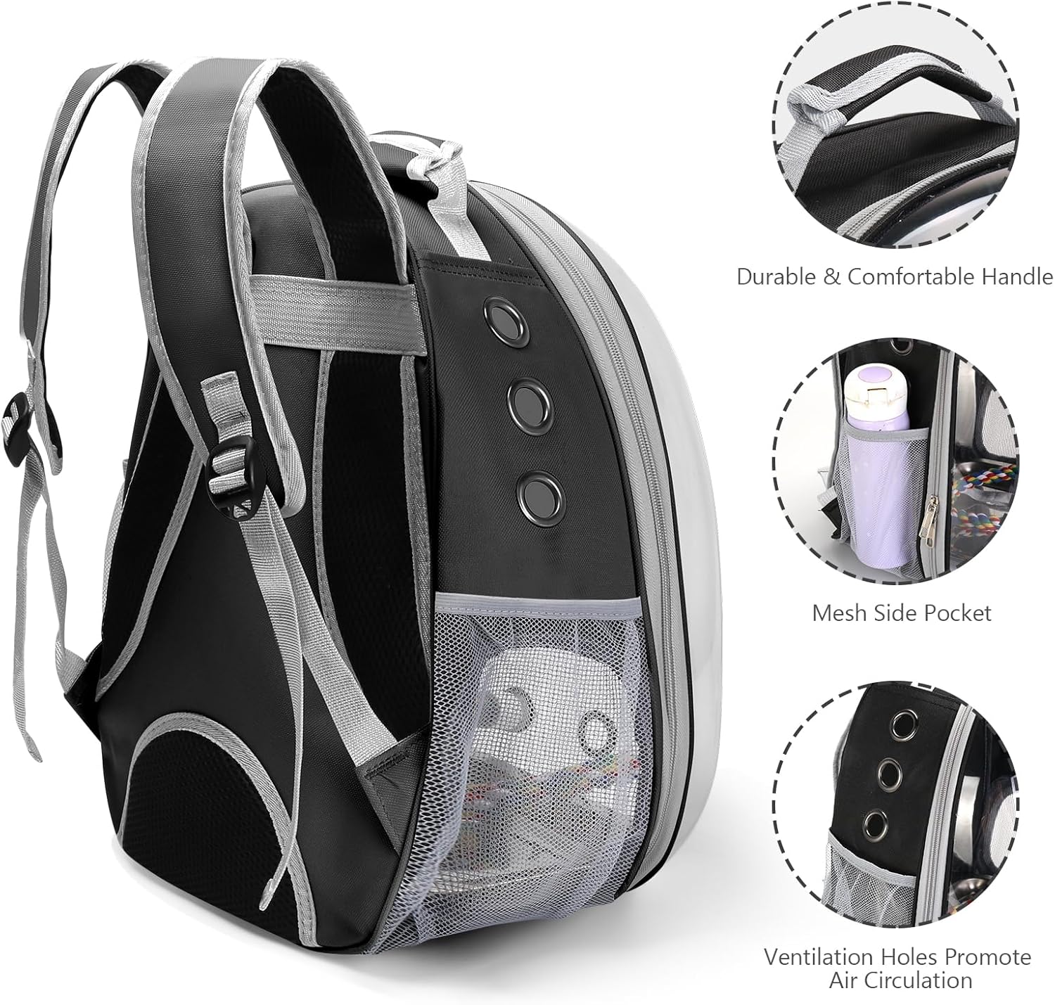 Bird Backpack Carrier, Travel Bird Cage for Small Medium Size Parrot Parakeet Budgies Cockatiel, Portable Clear Bubble Window Bag with Stainless Steel Tray Food Bolw Standing Perch (Black)