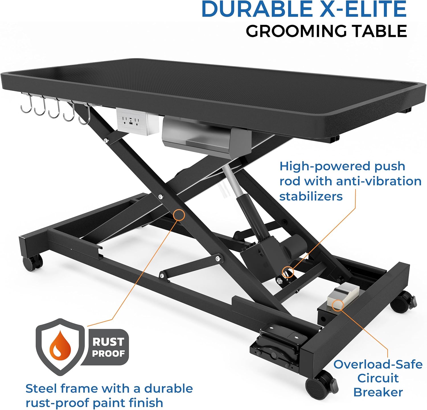 - STURDY & DURABLE ELECTRIC TABLE - Built on a Rustproof powder-coated heavy gauge steel frame, the X-Elite Premium dog grooming table provides unparalleled stability without any wobble. The newly improved commerical 304 stainless grooming arm increases both durability and stability. Tailored for the discerning groomer, this pet grooming table elevates the comfort and efficiency of your grooming space.