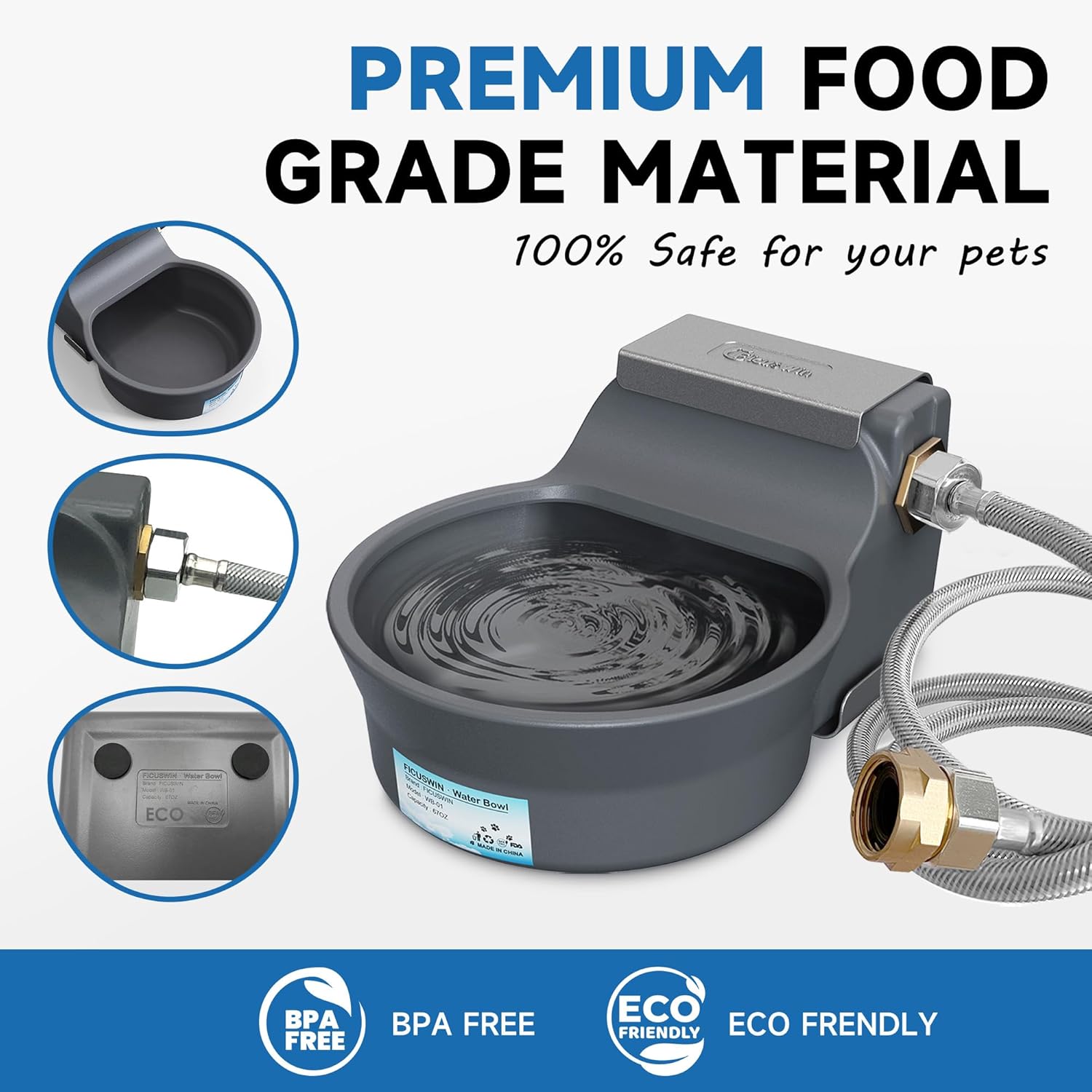 - FOOD GRADE MATERIAL: Our pet water dispenser is crafted from high-quality, food-grade HDPE material that's eco-friendly, BPA-free, and provides comprehensive protection for your pet's drinking water safety. Plus, its sturdy and durable construction ensures that even the most mischievous pets won't be able to damage the bowl