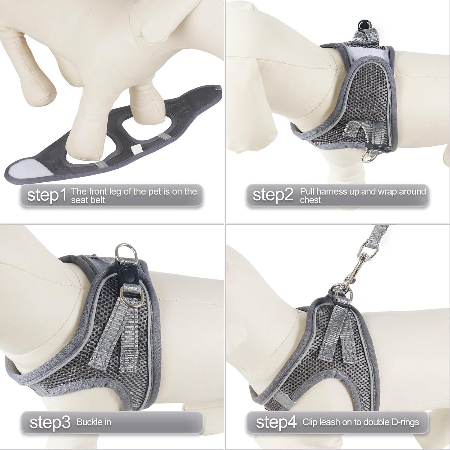 - 【Step-In Design, Simple】Effortlessly slip this harness on or off your pup in seconds, Step in, Clip&Go, so easy; Triple security features of strong closure, Double D-ring&Buckle ensures no accidental detachment