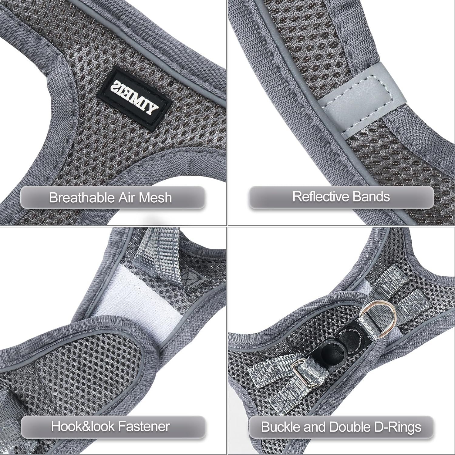 YIMEIS Dog Harness and Leash Set, No Pull Soft Mesh Pet Harness, Reflective Adjustable Puppy Vest for Small Medium Large Dogs, Cats (Gray, Medium (Pack of 1)