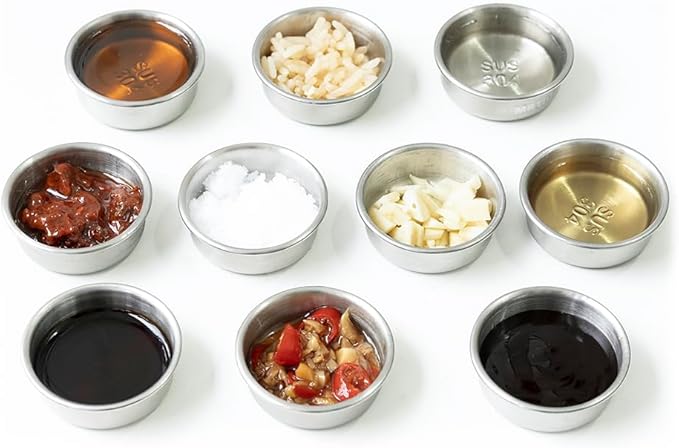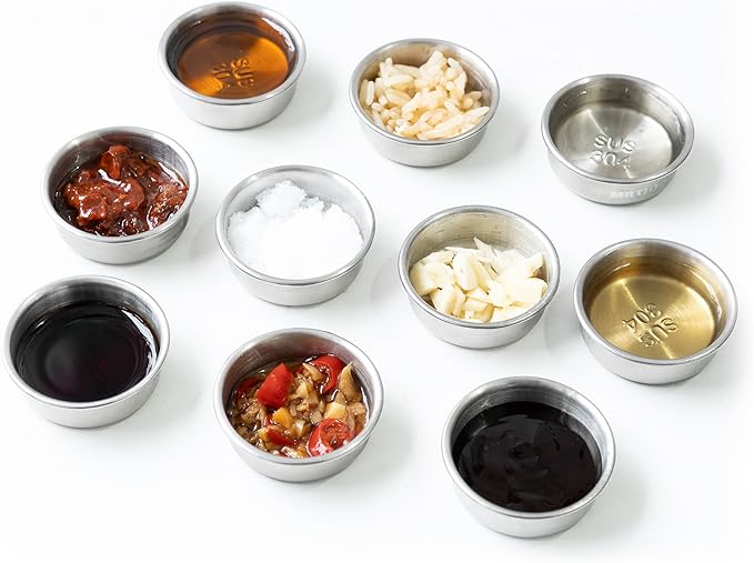 0.5oz Feeding Cups 10pcs, Stainless Steel 304 SUS Metal, Reptile Food Bowls and Water Dish, for Crested Gecko, Lizard Or Other Small Pet Feeder Ledge Accessories Supplies