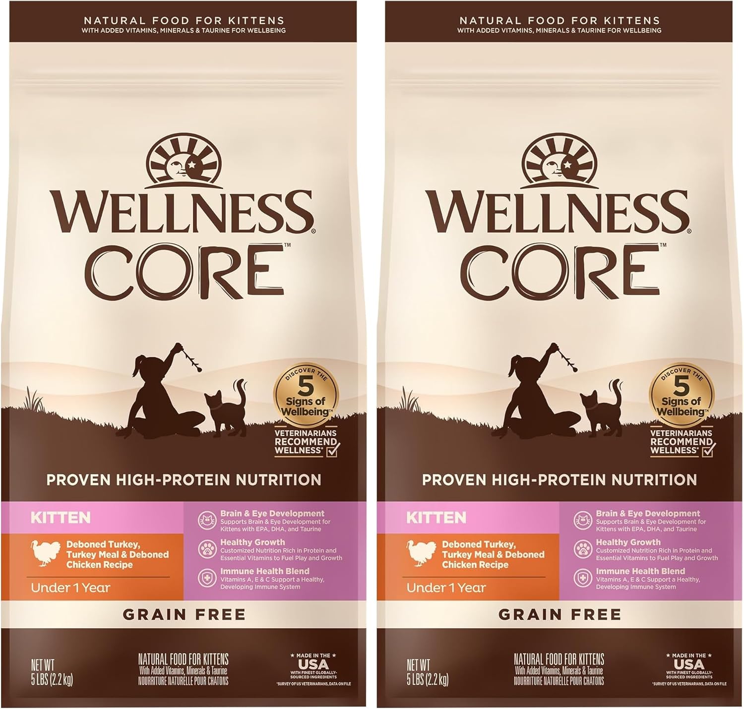 Wellness CORE Grain-Free Kitten Formula Dry Cat Food, 5 Pound Bag (Pack of 2)