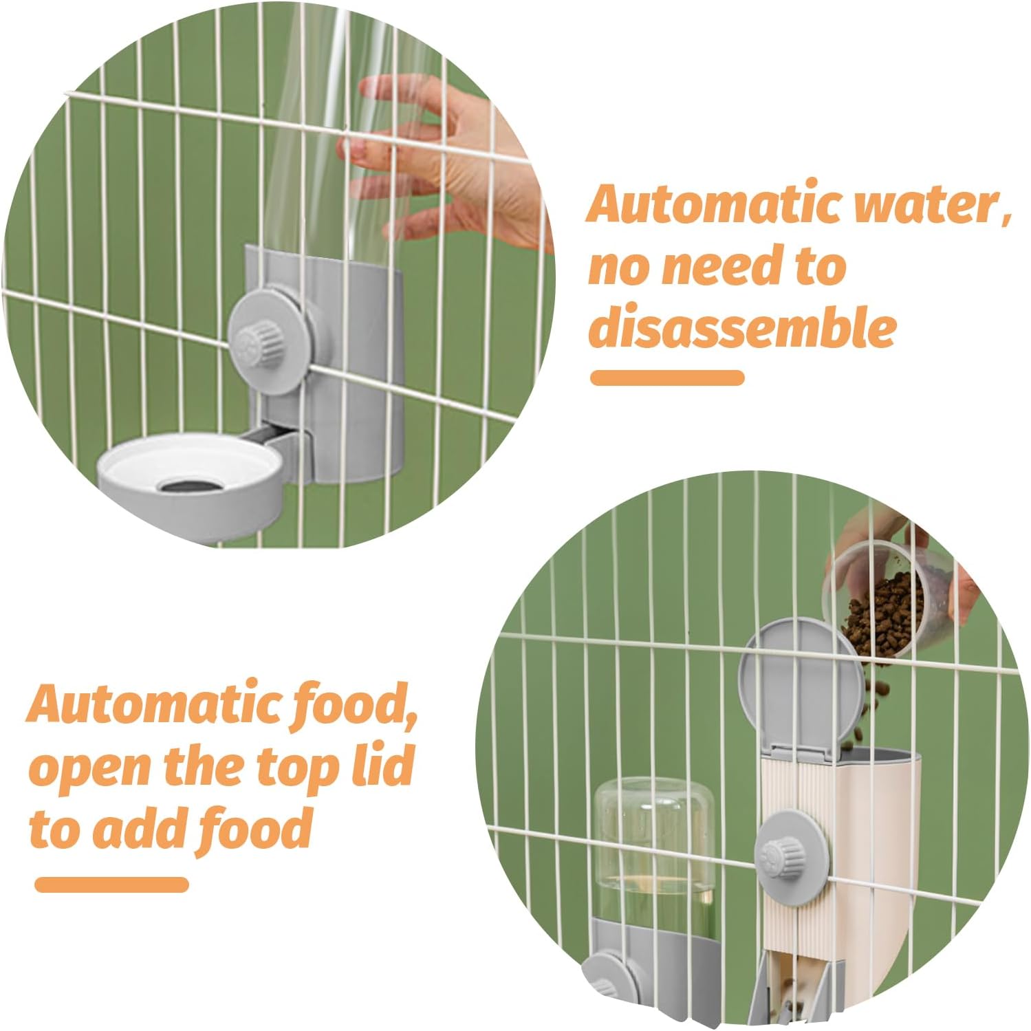 - 【Safety & Convenient to Use 】: Our feeders and water are made of food-grade plastic material, non-toxic and tasteless. The clear design is great for keeping tabs on how much food and water they have left. They are attached to the cage fairly easily and you can refill them without having to open the cage. The lid can be opened at the top to feed your pet easily and conveniently.