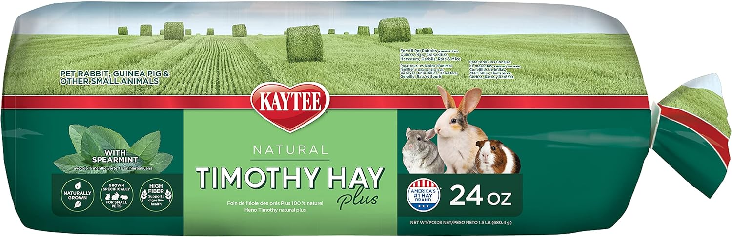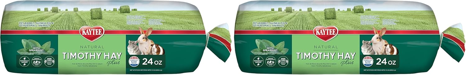 Kaytee All Natural Timothy Hay Plus Mint for Guinea Pigs, Rabbits & Other Small Animals, 24 Ounce (Pack of 2)