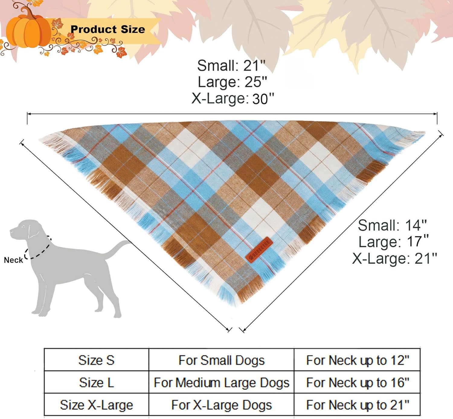 - Fall Dog Bandanas: Stylish blue and orange plaid with tassels edges, fashion and never out of date, full of autumn atmosphere, make your dog look attractive and lovely for halloween, thanksgiving holiday and fall season.