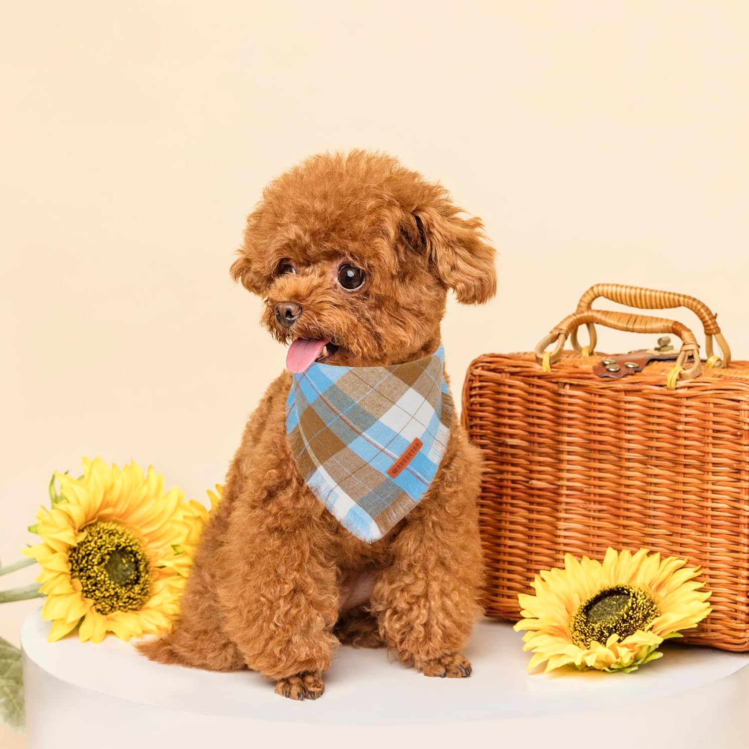- Fall Dog Bandanas: Stylish blue and orange plaid with tassels edges, fashion and never out of date, full of autumn atmosphere, make your dog look attractive and lovely for halloween, thanksgiving holiday and fall season.
