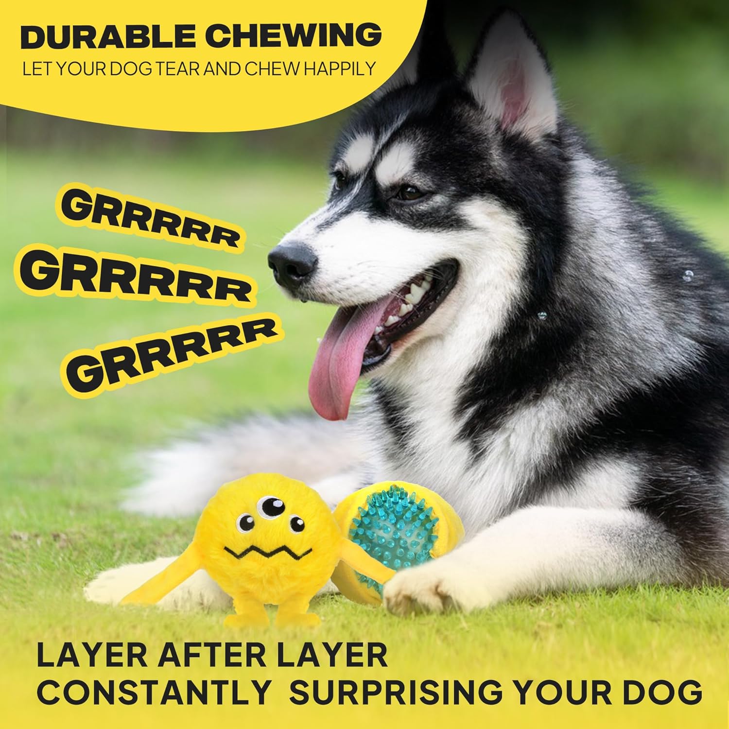 - 【3-IN-1 Destroy To The Fullest】:This Dog chew toys for aggressive chewers are designed to be dog chewers and can be destroyed to the fullest. This squeaky dog chew toys features a unique design that allows you to tear apart the toy and reveal another toy inside. Rip this dog chew toys open to reveal other monsters with different expressions. There is also a squeaking dog toy ball for aggressive chewers inside