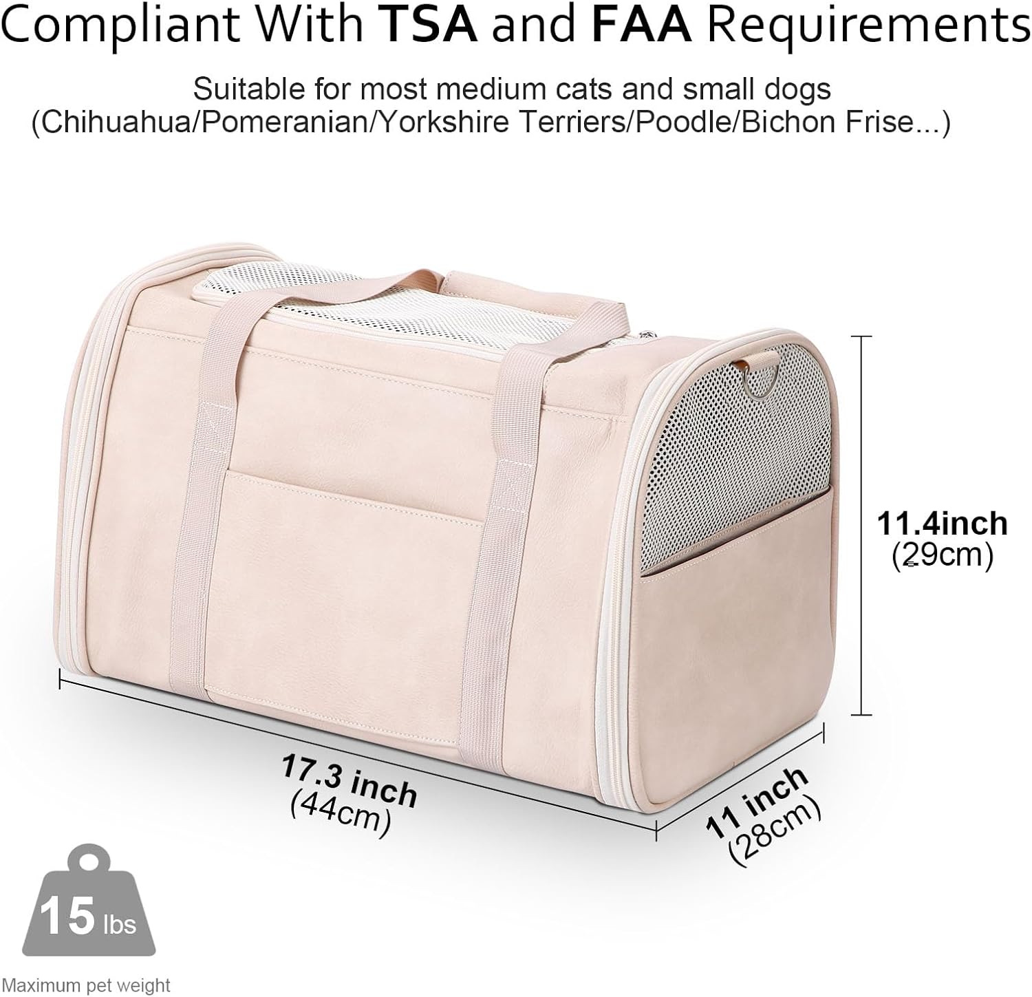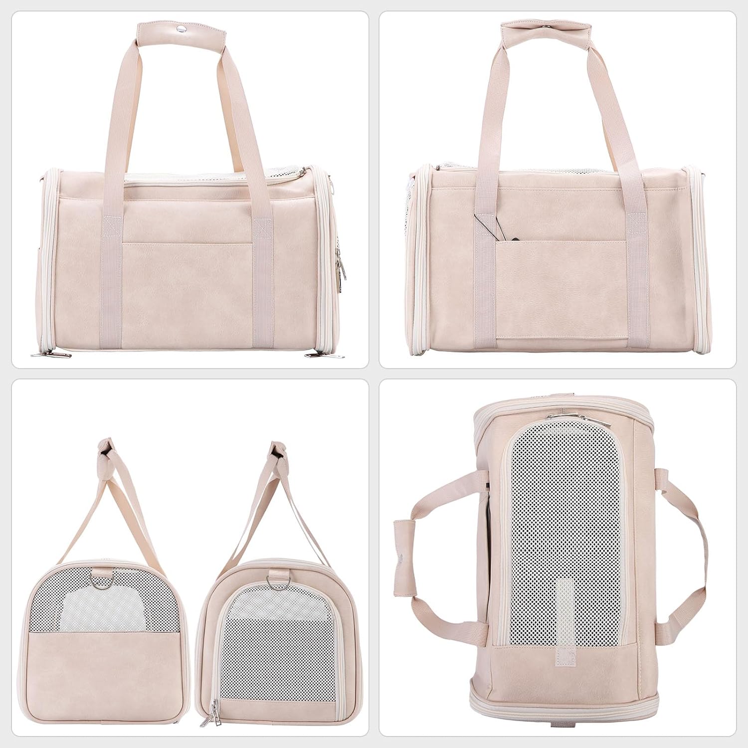- 【Fashionable and Comfortable】The new fashionable dog carrier is simple and elegant, perfect for small pets daily traveling needs. Whether you are shopping, driving, traveling by plane or going to the vet, it provides a comfortable, spacious travel experience for your pet.