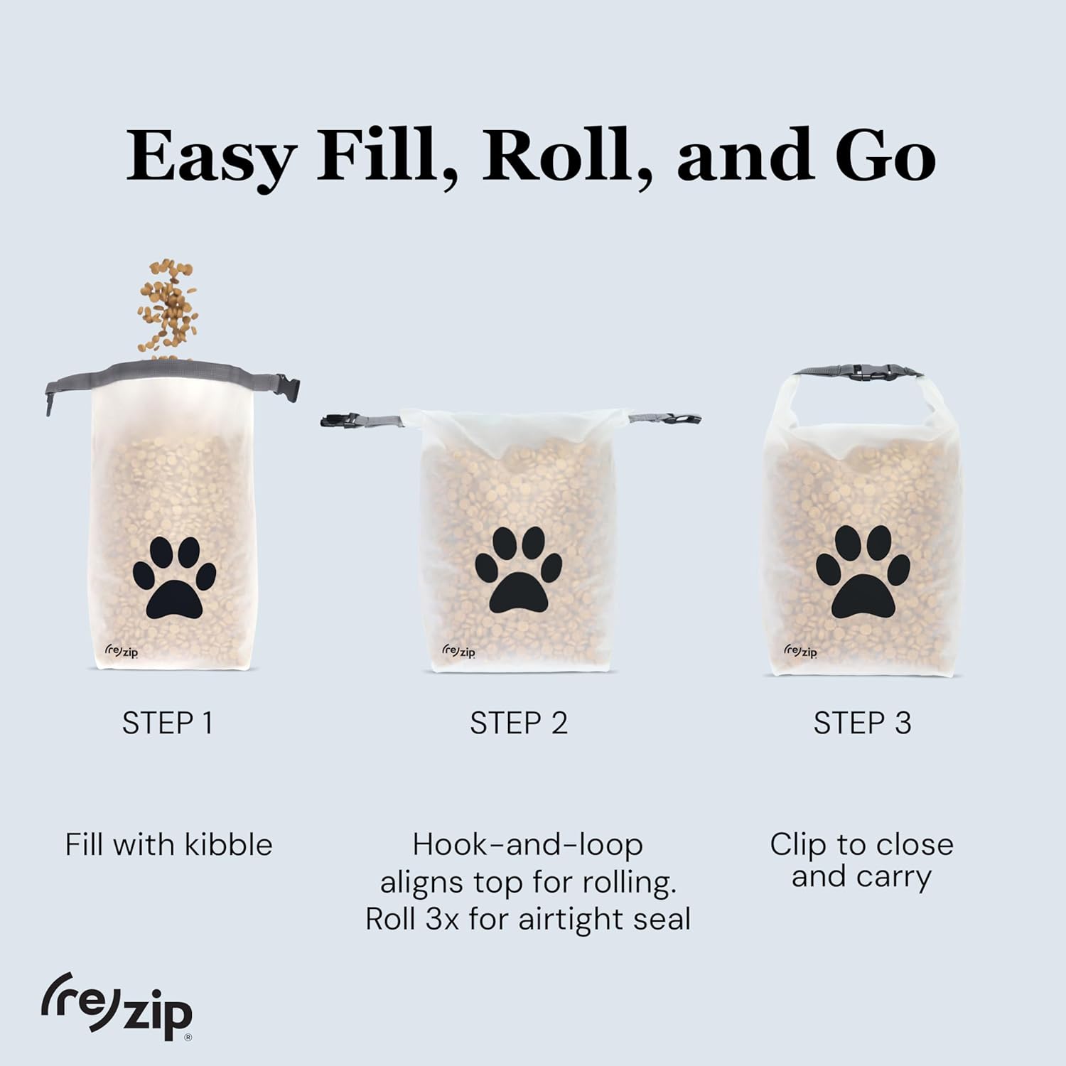 (re)zip Roll Top Pet Food Storage Bag (14-Cup) | BPA-Free, Food Grade, Pet Safe, Travel-Friendly | Keeps Kibble Fresh for Camping, Dog Boarding, Weekend Getaways | Machine Washable | Cobalt Blue