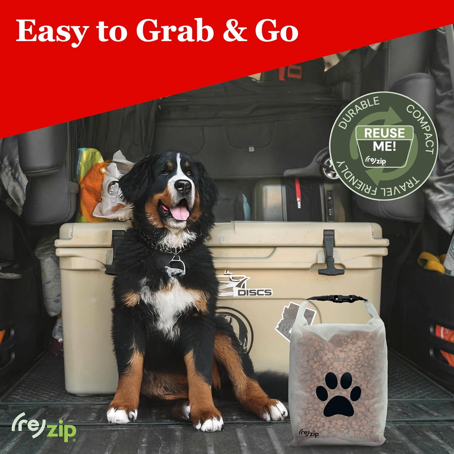 (re)zip Large Roll Top Pet Food Storage Bag 40-Cup, BPA-Free, Food-Grade, Pet-Safe, Freshness Seal for Camping, Travel & Daily Use, Machine Washable, Cobalt Blue