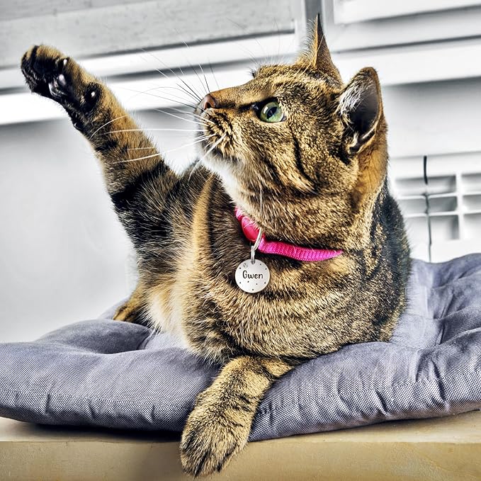- Cute Font Design Pet ID Tags for Small Size Dog Cat - Personalized laser engraved pet tags with your pet's name, icons and pattern design. A well-designed cute fashion name tag for your beloved dogs, cats, or other pets.
