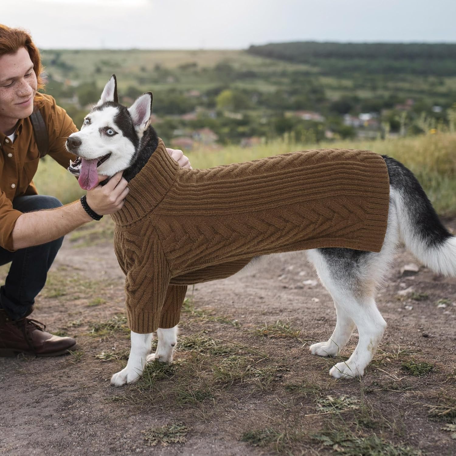 - Fashionable Cable-Knit Design: The stylish cable-knit pattern on the back adds a touch of elegance. This dog sweater for large dogs is perfect for both everyday wear and special occasions, including as a large dog Christmas sweater