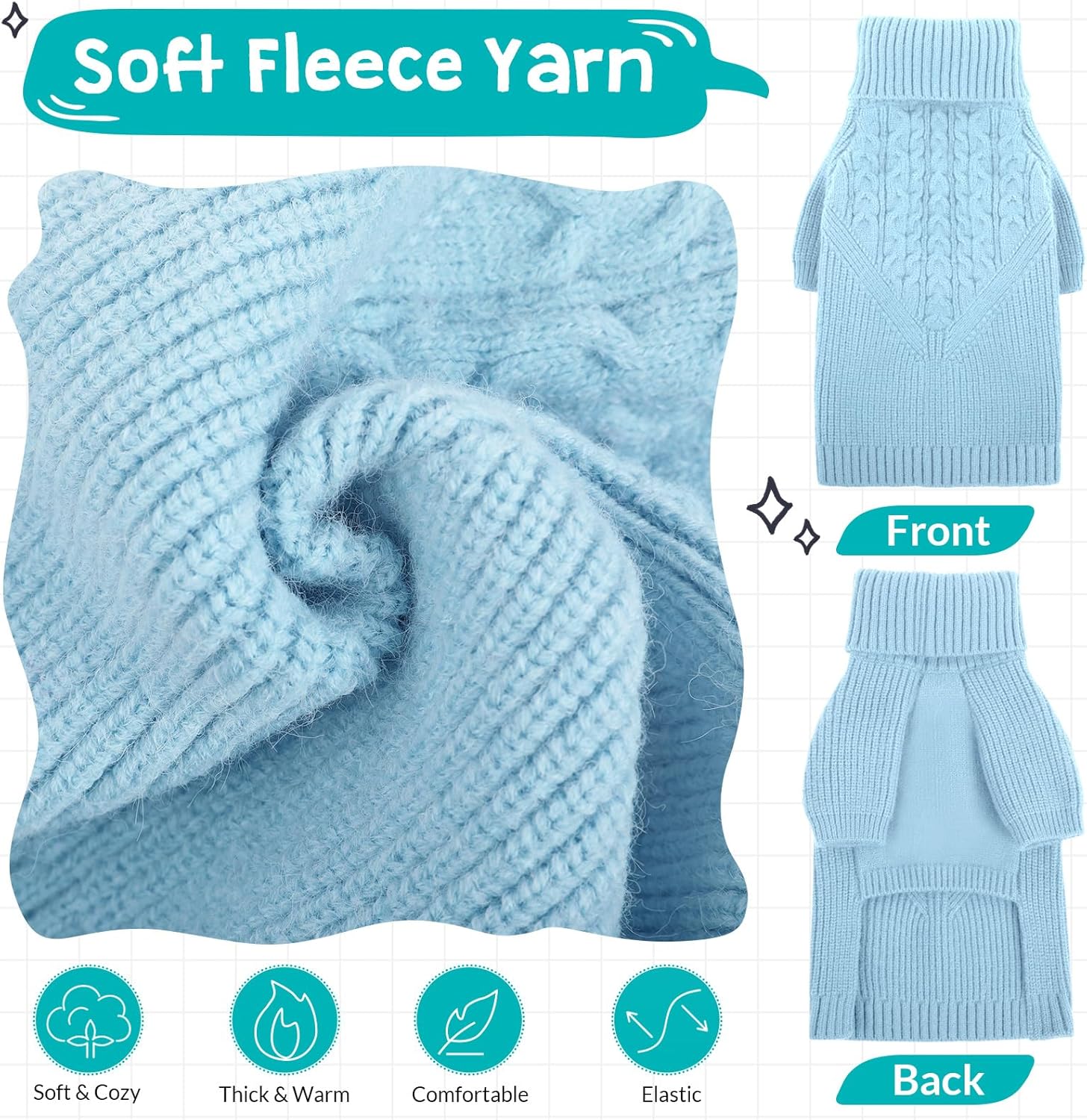 - Warm Dog Sweater - This cable knitting dog sweater is made of sufficient ultra soft fleece yarn that keeps warm well. Chunky sweater for dogs features turndown turtleneck and long sleeves, stretchy and cozy coverage of the body, keeping your dog warm comfortably.