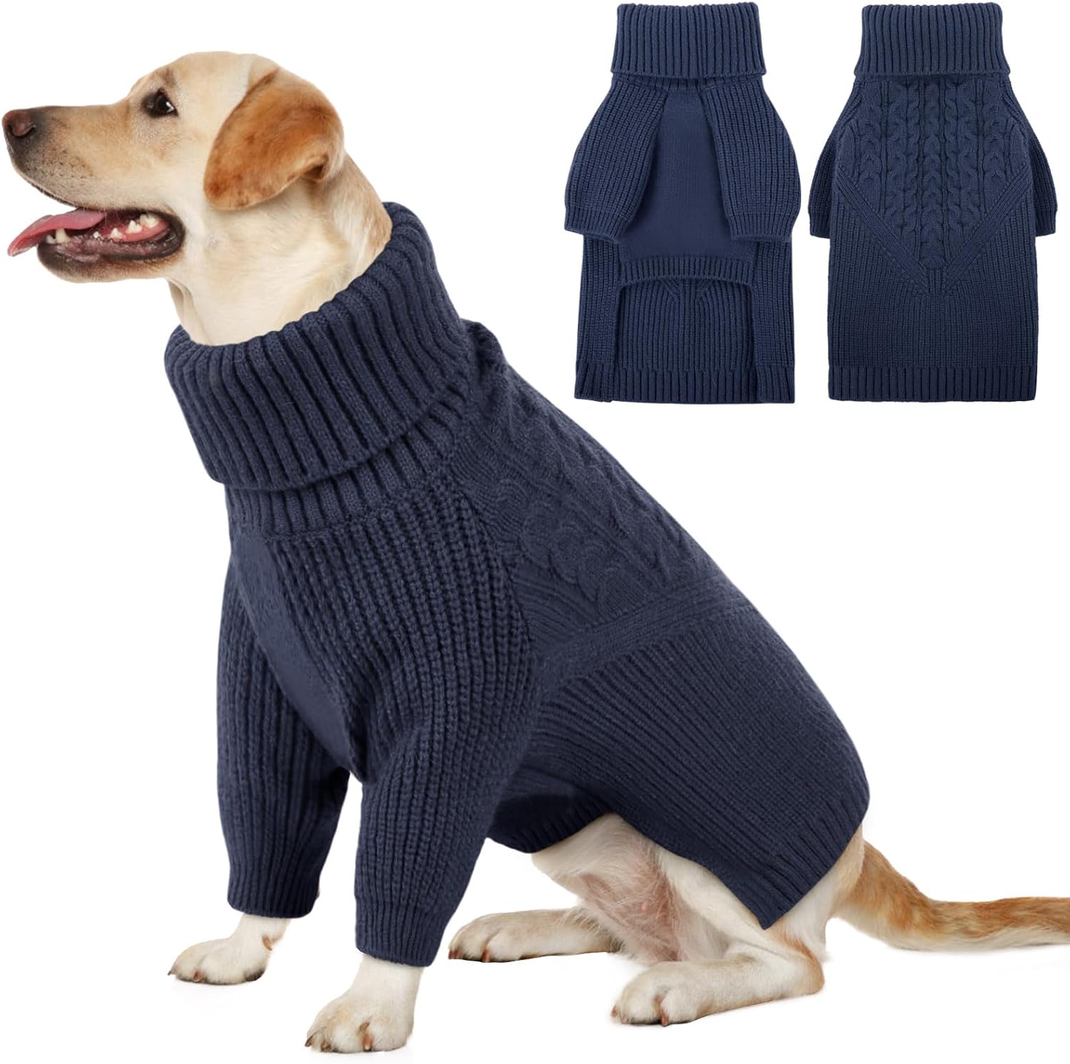 - Warm Dog Sweater - This cable knitting dog sweater is made of sufficient ultra soft fleece yarn that keeps warm well. Chunky sweater for dogs features turndown turtleneck and long sleeves, stretchy and cozy coverage of the body, keeping your dog warm comfortably.