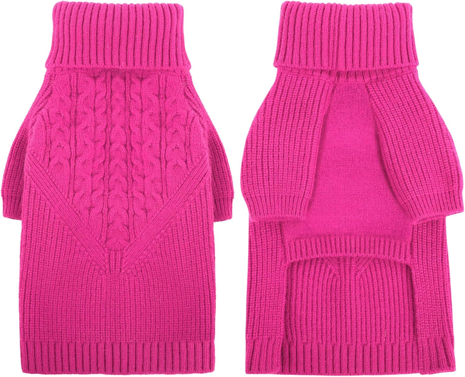 - Warm Dog Sweater - This cable knitting dog sweater is made of sufficient ultra soft fleece yarn that keeps warm well. Chunky sweater for dogs features turndown turtleneck and long sleeves, stretchy and cozy coverage of the body, keeping your dog warm comfortably.