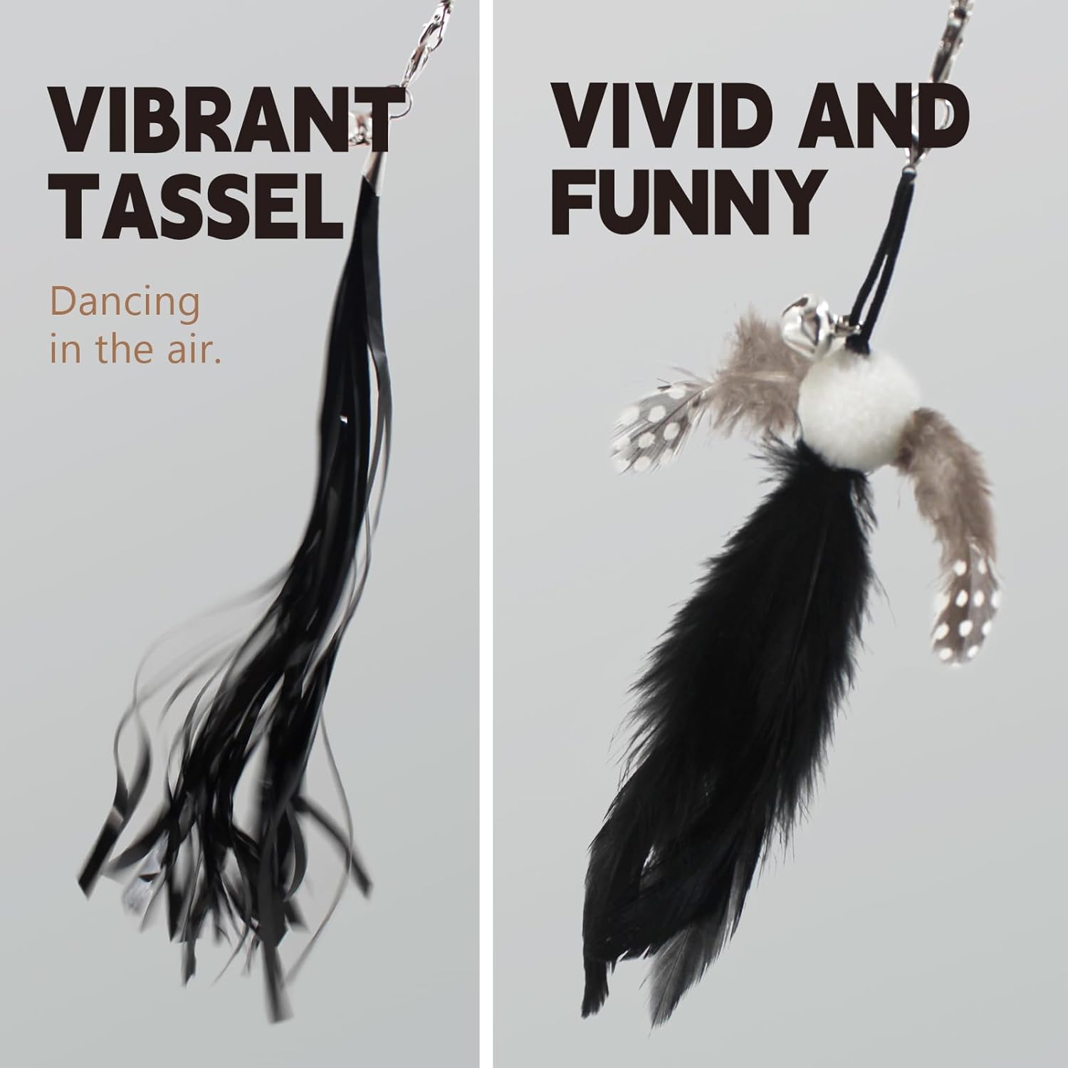 - [Multiple cat teaser toys] This cat teaser toy with diverse natural feathers and cat tassel toy. They are easy to replace with the clasp, which will bring more play options and fun to cats