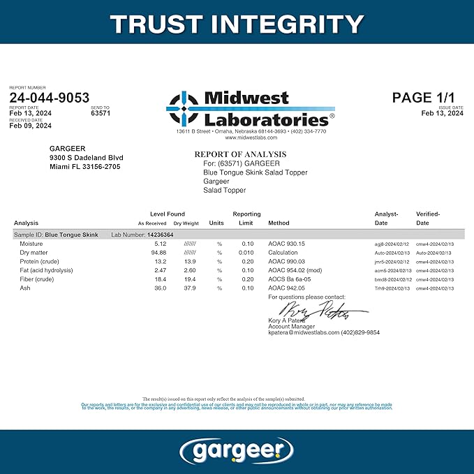 - EXPERTISE. Formulated and manufactured by a herpetologist and pioneer in the reptile nutrition industry with over 25 years of experience. This level of craft, leads to an easily digestible, growth promoting formula, which in turn leads to a cleaner waste and a healthier living environment.