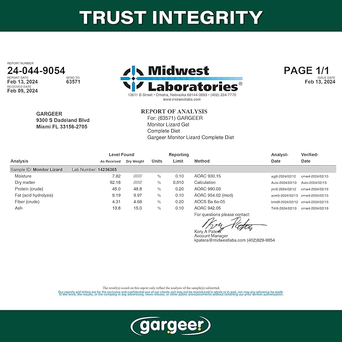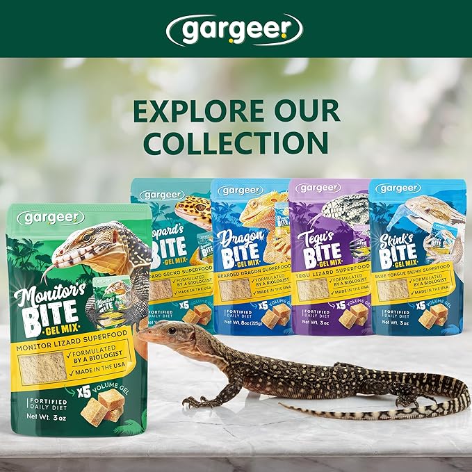 - HUNTING MONITOR. We all know some monitor lizards may be picky, and will need some encouragement getting used to a brand-new food. Let's patiently help them fall in love with Gargeer gels! We advise starting with a solid stripe you'll hand feed, using tongs/tweezers, an action that triggers their hunting instinct. A healthy fun for all parties involved!
