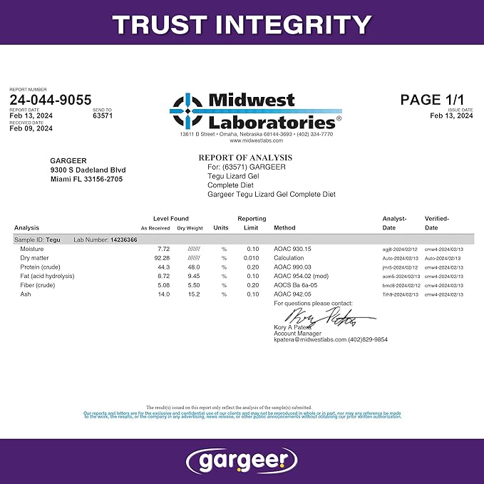 3oz Tegu Lizard Food. Complete Gel Diet for Both Juveniles and Adults. Proudly Made in The USA, Using Premium Ingredients, Fortified Gourmet Formula. Enjoy!
