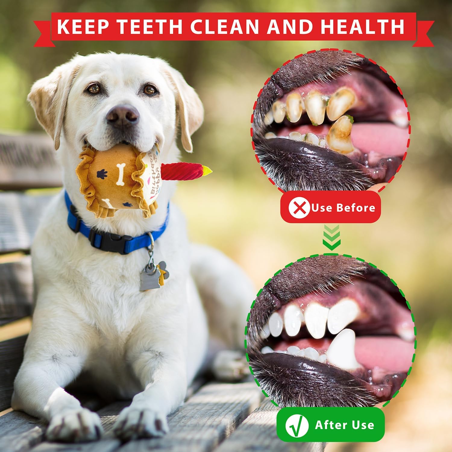 - PERFECT GIFT FOR SPECIAL OCCASIONS: Celebrate your dog's birthday or adoption in style with this 3-pack toy set. The included candles add a festive touch to the birthday cake toy, making it even more fun and engaging. Surprise your furry friend with these squeaky, crinkly, and irresistibly fun dog toys to make their special day even more memorable.