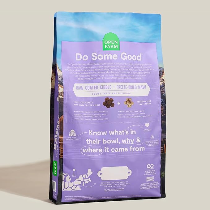 Open Farm, RawMix Grain-Free Dry Dog Food for Large Breeds, Protein-Packed Kibble Coated in Bone Broth with Freeze Dried Raw Chunks, Salmon Chicken & Turkey, Large Breed Recipe, 20lb Bag