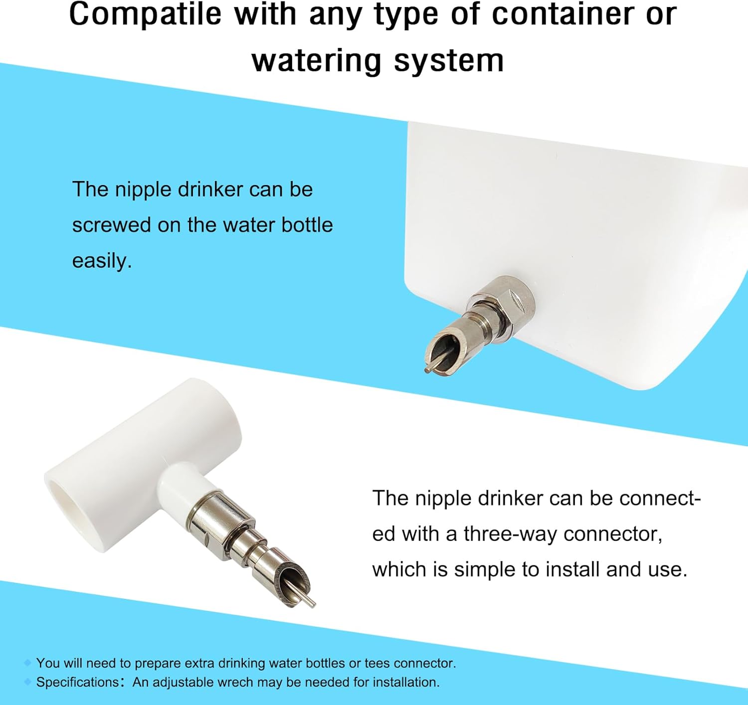 - Material: Made of rust-proof stainless steel, it effectively avoids the corrosion problems common in other materials. Precision silicone sealing rings are installed at the interface of the rabbit nipple water to prevent leakage when installed in the watering system.