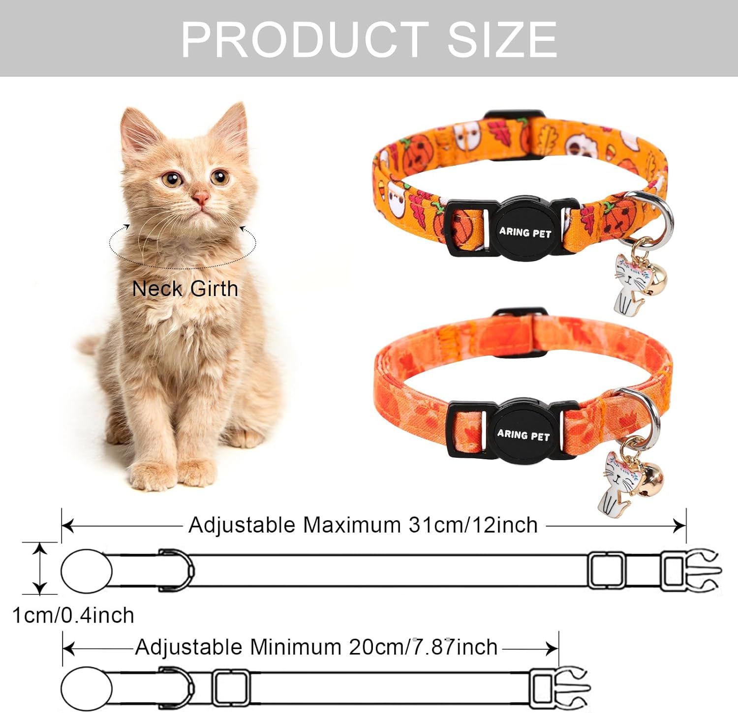 - SAFETY:❤Our fall&halloween cat collar with bells adds extra protection, alerting you to your cat's whereabouts.❤Breakaway buckles design, simply give it a tug, and it swiftly releases, provides more safety for our pets.