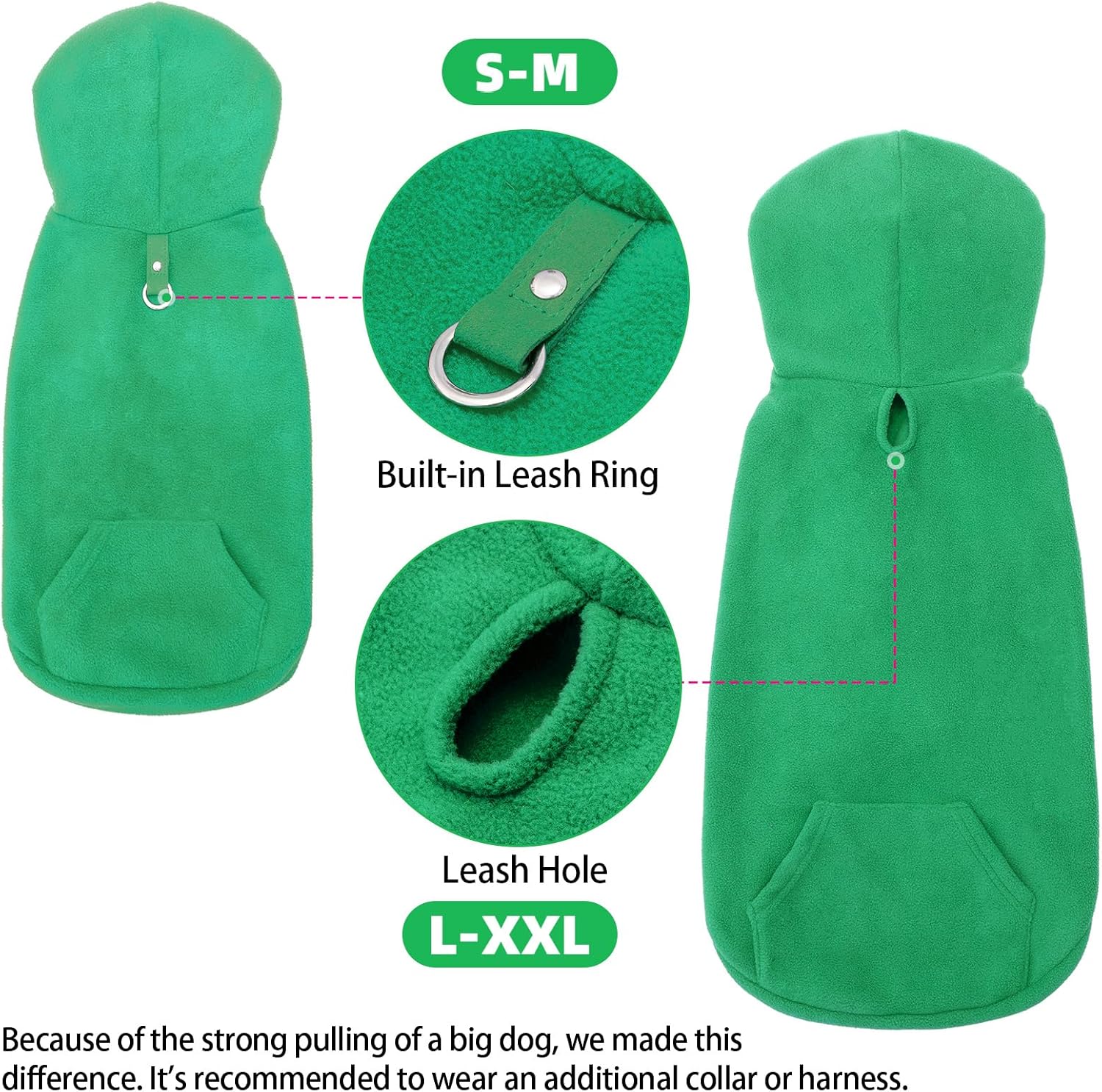 - DETAIL DESIGN: There is a built-in O-ring on the small and medium-sized hoodies, which will be convenient for attaching a dog leash. In consideration of strong pulling, instead, there is a leash hole on the large-sized hoodies.