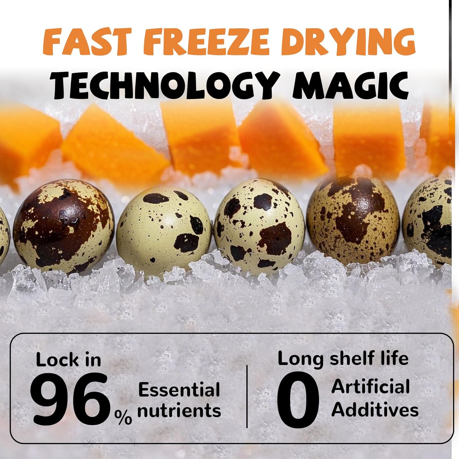 - Premium Quail Egg Yolk: Pawup's freeze-dried treats use free-range, non-GMO fed quail egg yolks and nutrient-rich pumpkin. This combination delivers a pure, concentrated protein source with a 5:1 raw-to-finished ratio. Strictly tested and certified by SGS, BRCGS, and UKAS, ensuring top-tier safety and quality in every bite