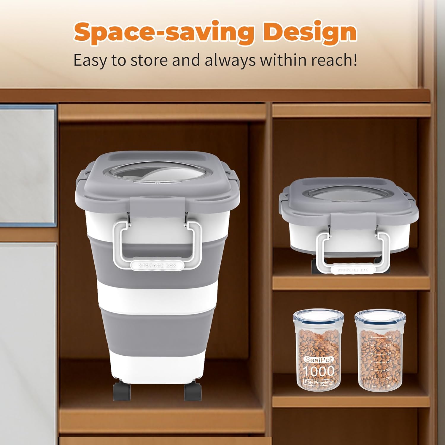 - Collapsible Design for Space-Saving: Our dog food container can collapse for easy storage, providing a space-saving solution for your pet food storage needs. It's perfect for homes of all sizes