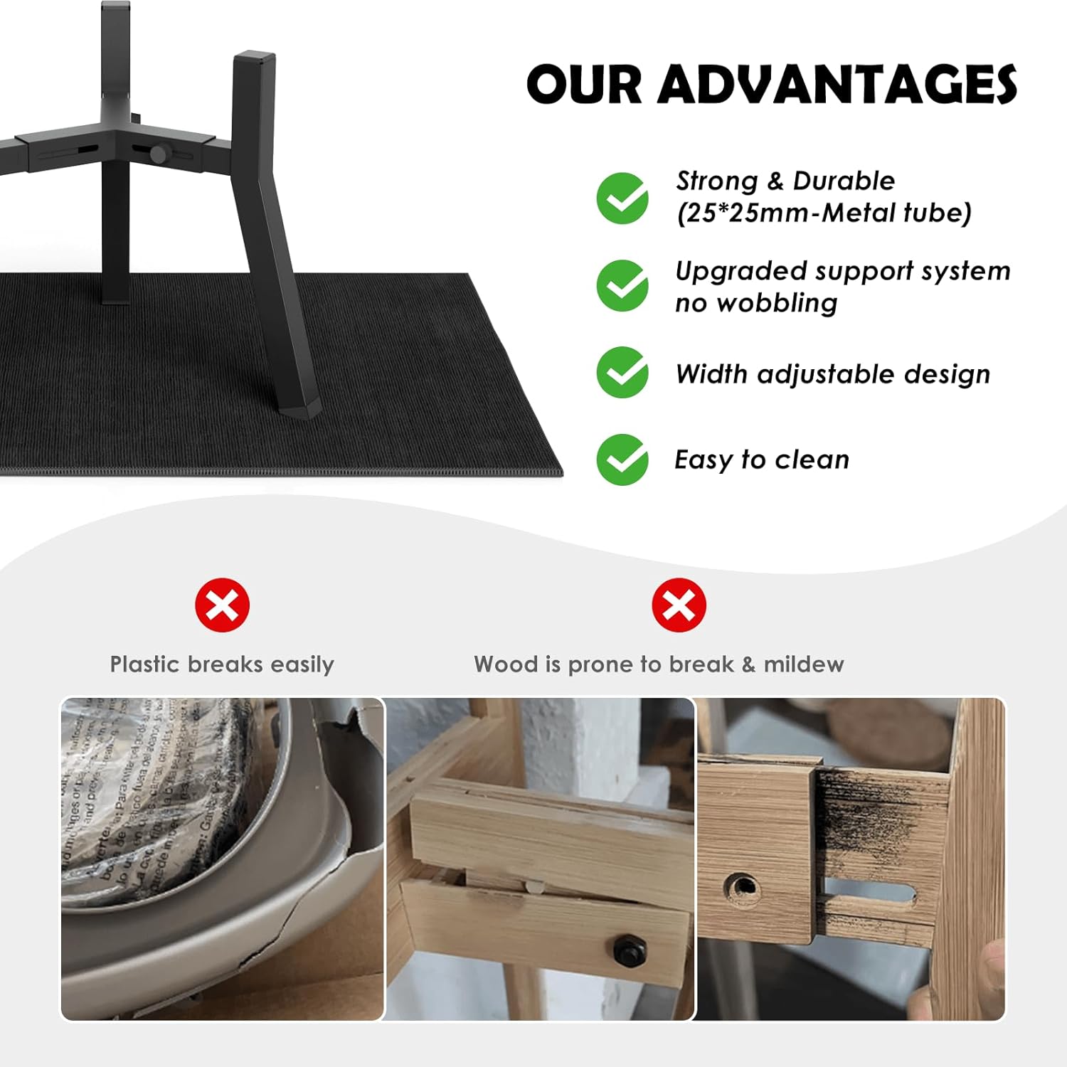 - 【No Messy Floors & Stable】- TIDANT dog bowl holder comes with a spill-proof mat (16x24 inches), which is great for avoiding water and food spills and keeping the floor dry.The legs of the dog food stand are designed to extend outward at a slanted angle and are fitted with non-slip feet pads on the bottom to keep the stand firmly in place and prevent your dog from knocking it over while eating.