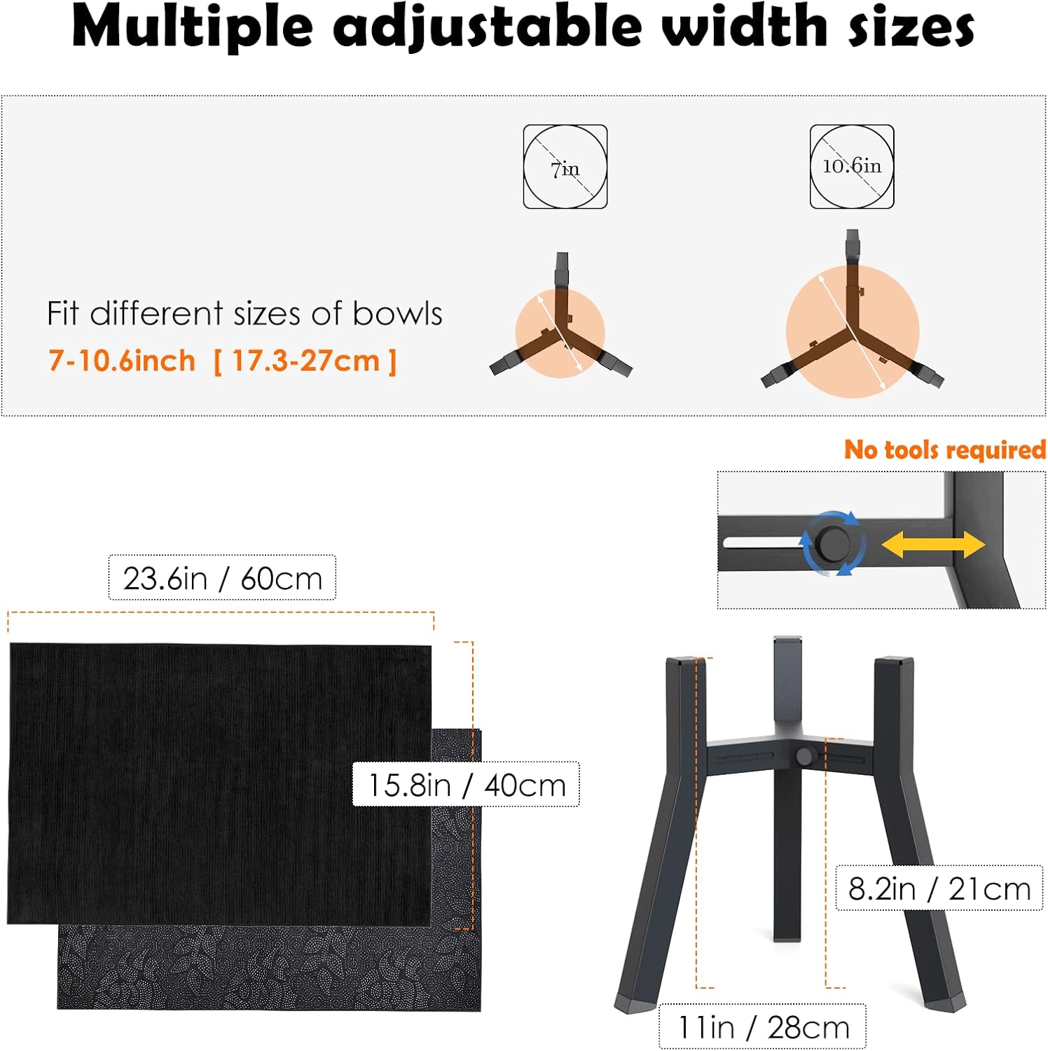 - 【Adjustable-Lockable Width 7"-10.6" Wide】- Simply place the bowl on the rails of the elevated dog bowls and adjust the width of the holder to the size of the bowl. Once you have determined the proper inside diameter, tighten the bolt to lock the width. Easy to tighten and loosen without tools.