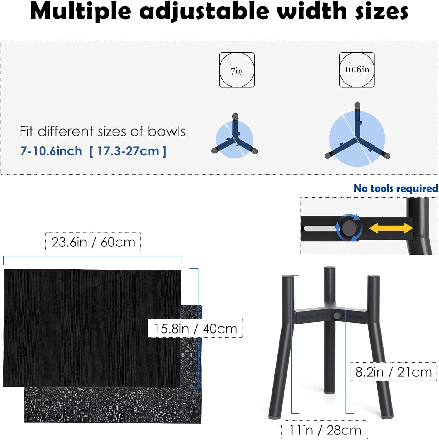 Dog Bowl Stand for Medium Large Dogs with Mat, Adjustable Width Elevated Dog Bowls for 7-10.6" Wide Bowls, Raised Food Water, 11 inch Tall Single Holder, Bowl Not Included