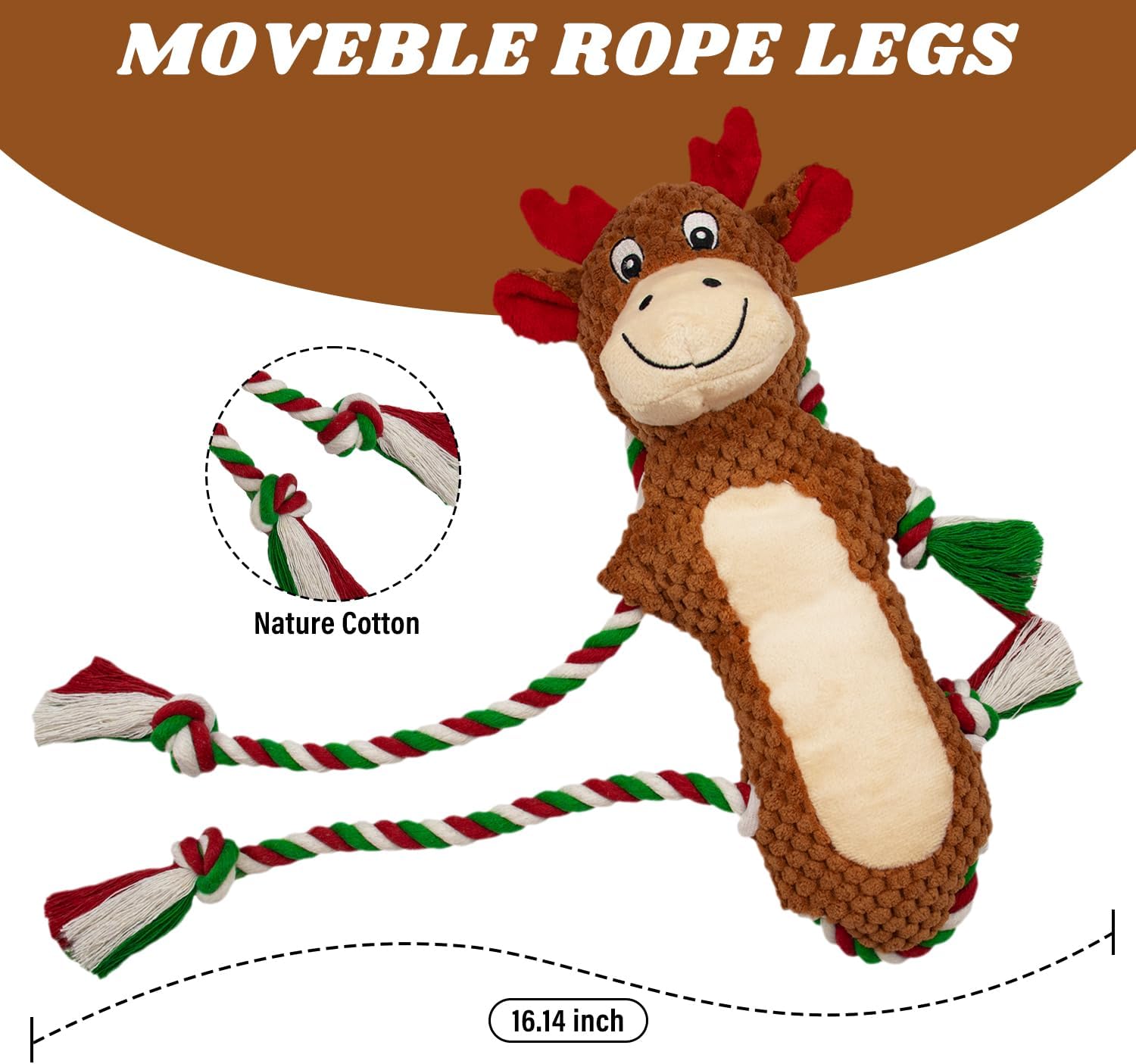 Christmas Squeaky Reindeer Dog Toys-Tug of War Dog Toy for Puppy- Keep Them Busy and Entertained- Interactive Pet Toys for Small & Medium Breeds